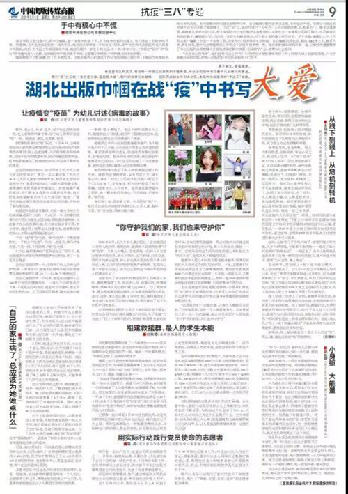 ——風(fēng)雨同舟,典型引路。愛立方黨員除了躬身參與抗疫這場(chǎng)人民戰(zhàn)爭(zhēng),還主動(dòng)繳納“特殊黨費(fèi)”,助力抗擊疫情。三八婦女節(jié)前夕,讓疫情變“疫苗”的郁丹和從線下到線上的金錦秀,作為長(zhǎng)江傳媒推出的8位巾幗英雄,受到《中國(guó)出版?zhèn)髅缴虉?bào)》的專題報(bào)道;肖艷霞、程曉毅、付歡、黃康、周玥、陳姣、劉勝男、葉璞薇、徐祎祎、侯婕、李曉睿、周柏姿、張國(guó)等員工為“致敬逆行者”創(chuàng)作的巾幗主題作品贏得廣泛好評(píng)。三八婦女節(jié)當(dāng)天,以《疫情之下,90后幼教工作者的責(zé)任與擔(dān)當(dāng)》為主題的愛立方大講堂暨三八婦女節(jié)公益直播課活動(dòng)順利開展,為廣大幼教工作者進(jìn)行勵(lì)志分享和心理輔導(dǎo),贏得一片贊譽(yù)。