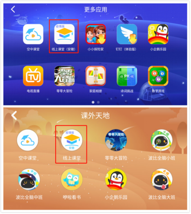 即日起,除了用手機、電腦、電視等途徑收看線上教育課程外,家長孩子們也可以選擇用阿爾法蛋收看啦。只需要在大蛋或大蛋2.0中找到“線上課堂”應用,就可以根據自身需要選擇對應的課程學習。大蛋2.0需要在小學賬號下,在“更多應用”中打開“線上課堂”,大蛋則可以在課外天地中找到。不卡頓,不掉線,全省小學課程同步學!