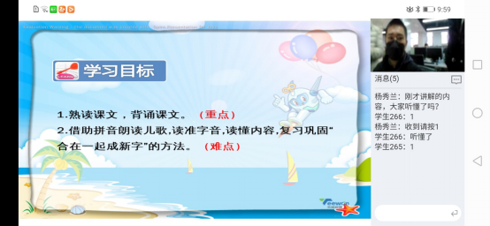 AI課堂研發負責人付華林介紹,老師點擊工具欄下“同步課堂”功能,即可開啟線上教學功能,系統會將老師端攝像頭畫面、老師講課的聲音同步推送給學生,老師和學生之間還可通過消息進行實時互動。