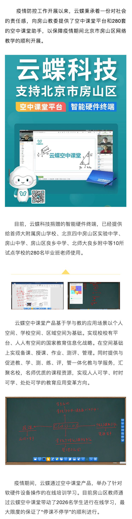 【案例】云蝶助力“北京市房山區(qū)”空中課堂順利開展!