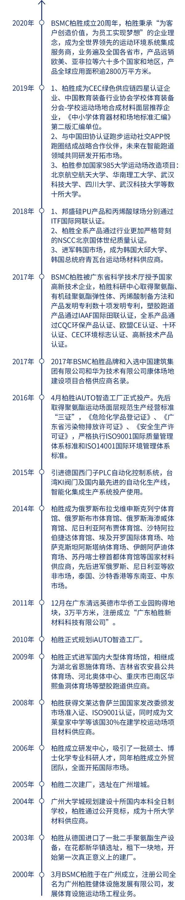 2016年毒跑道事件,行業(yè)內(nèi)沉寂一片時,柏勝接下位于廣州市CBD中心的天河中學(xué)跑道場地鋪設(shè)項目,并且同年全面開拓國際市場,這在當(dāng)時是絕無僅有的。