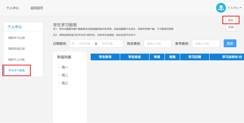 三、校長端和教師端學(xué)生學(xué)習(xí)報表管理