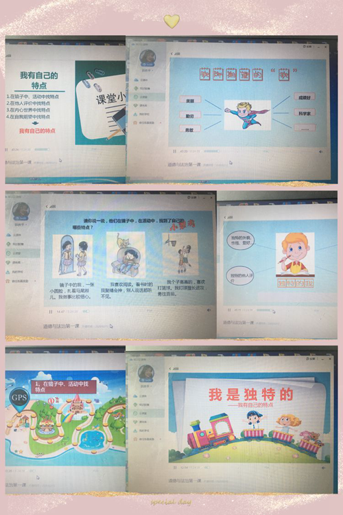 為了線上教學(xué)的新模式,負(fù)責(zé)《道德法制》的周老師和田老師,從頭開始研讀教材,梳理教案,制作課件,一次次的試講后才有正式線上教學(xué)時(shí)的自信與揮灑自如。