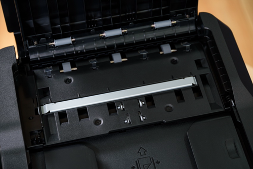 位于一體機(jī)頂部的是自動進(jìn)稿器,它能自動把紙張送入打印機(jī)內(nèi)部,以進(jìn)行掃描或是復(fù)印,一次最多可容納20頁紙張。學(xué)生一份習(xí)題往往不會超過10頁,20頁一次復(fù)印量足以滿足日常使用了。如果用戶需要掃描或復(fù)印的是身份證、戶口本等不能彎曲的證件,可以掀起一體機(jī)頂蓋,用平板掃描器直接掃描。
