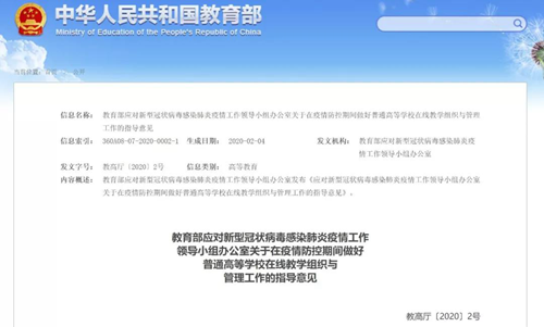 《在疫情防控期間做好普通高等學校在線教學組織與管理工作的指導意見》