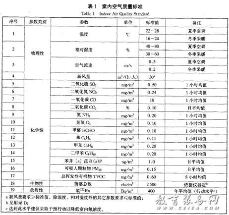 GB/T 18883-2002《室內空氣質量標準》中規定室內空氣質量標準如下: