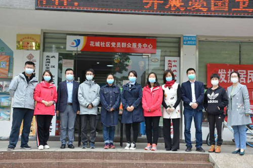 投身抗疫一線的工作人員在花城社區“安心小屋”合影