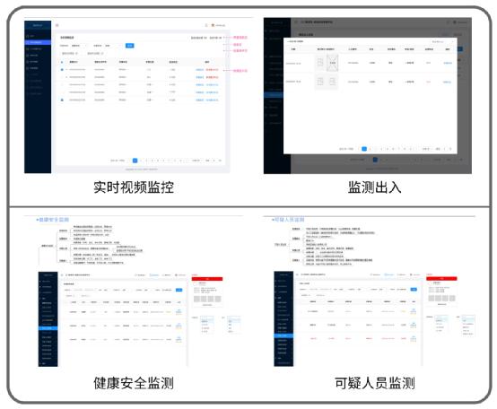 分為:人防模塊、物防模塊,技防模塊(健康監測,出入口監測,可疑人員監測,消防安全監測,校車安全監測,食品衛生安全監測)。