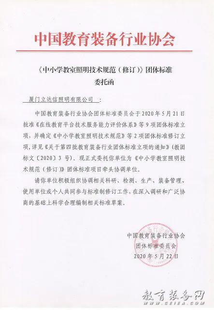 受中國教育裝備行業(yè)協(xié)會委托,由立達(dá)信作為《中小學(xué)教室照明技術(shù)規(guī)范》標(biāo)準(zhǔn)修訂項目牽頭協(xié)調(diào)單位。為按時高質(zhì)量完成標(biāo)準(zhǔn)修訂工作,現(xiàn)向社會各界公開征集參編單位,誠邀各教育廳、教育局、教育裝備部門、體衛(wèi)藝、高校、認(rèn)證機(jī)構(gòu)、檢測機(jī)構(gòu)及具備研發(fā)生產(chǎn)實力照明企業(yè)參加,更廣泛征集、了解教育照明發(fā)展需求,共同助力教育照明標(biāo)準(zhǔn)提升,造福廣大師生。