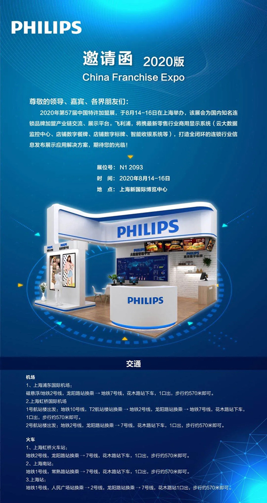 千億級(jí)市場(chǎng)蘊(yùn)藏的巨大商機(jī),吸引著各路資本追逐。飛利浦商用顯示器一直堅(jiān)持科技創(chuàng)新,秉承“創(chuàng)新為你”的品牌理念,憑借行業(yè)領(lǐng)先的創(chuàng)新科技,長(zhǎng)期以來(lái)一直以實(shí)力引領(lǐng)市場(chǎng)。在本次特許加盟展上,飛利浦將攜最新零售行業(yè)商用顯示系統(tǒng)(云大數(shù)據(jù)監(jiān)控中心、店鋪數(shù)字餐牌、店鋪數(shù)字標(biāo)牌、智能收銀系統(tǒng)等),打造全閉環(huán)的連鎖行業(yè)信息發(fā)布展示應(yīng)用解決方案,敬請(qǐng)光臨!