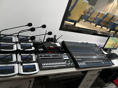 會議廳擴聲設備由陣列全頻音箱、超低頻音箱、輔助音箱組成,分別在廳內主席臺上方,觀眾前區、中區、中后區及廳后區,通過精確計量音箱距離和擴聲角度安裝,保障廳內聲壓足,聲音覆蓋均勻,清晰度高的擴聲環境。配置合適功率功放、調音臺及周邊音頻處理器等,不論是用于會議擴聲或是演出擴聲,都能呈現最佳擴聲效果。