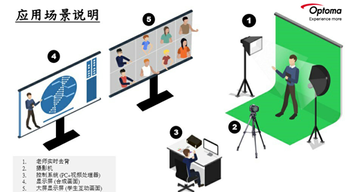 針對線上課堂互動性不強的問題,該解決方案可以實現AR影像與背景影像,AR影像可幫助學生理解,生動的3D模型可以讓學習記憶深刻,而符合課程的背景影像,可以讓學生上課也像看電影一樣身歷其境。