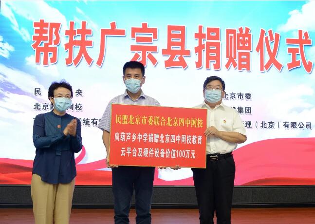 8月27日、28日,民盟北京市委聯合北京四中網校分別向畢節長春堡中學、廣宗葫蘆中學捐贈教育云平臺,為當地脫貧攻堅貢獻智慧和力量。北京四中網校校長黃向偉出席捐贈儀式,分別為兩所學校授牌。