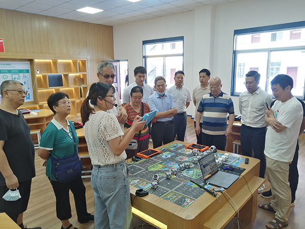 9 月 15 日上午,中科院前黨組副書記攜專家團、臺州市科協等領導調研臺州研學基地。參觀時,郭書記與專家團一行高度肯定了研學基地各個科技類硬件設施和教學課件,紛紛為研學基地的各項教學項目和教學效果點贊,并與創造樂園授課教師進行了深度交流。