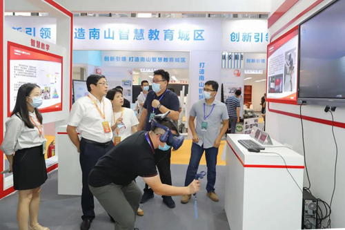深圳市教育局副局長趙立、深圳市教育信息技術中心主任張惠敏體驗參觀我校裝備展區