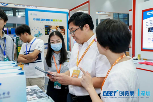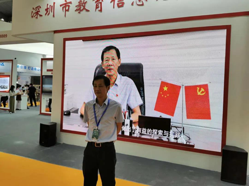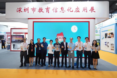 9月19日上午深圳市教育局副局長、黨組成員,市委教育工委委員趙立巡展,深圳市教育信息技術中心(教育裝備中心)主任張惠敏、深圳市教育裝備行業協會常務秘書長文熠陪同巡展。