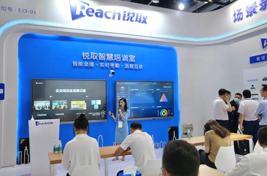 針對企業多地同步培訓、實現多方遠程互動培訓需求,本次展會銳取還展出高性價比、智能化的整體解決方案——銳取智慧培訓室,無需裝修、簡單部署即可實現多方遠程互動培訓,滿足用戶線上線下培訓學習的全場景應用。