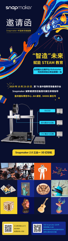 賦能STEAM教育:Snapmaker三合一3D打印機強勢登陸2020中國教育裝備展!