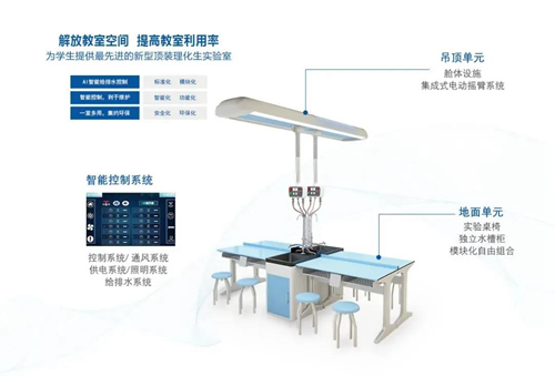 新型頂裝理化生實(shí)驗(yàn)室創(chuàng)新實(shí)驗(yàn)室建設(shè)及設(shè)計(jì)理念、打破傳統(tǒng)理化生實(shí)驗(yàn)室地面建設(shè)方式,從地面(隱蔽)走向頂部(開放),安全智能、功能全面、建設(shè)靈活,是新一代理化生專業(yè)實(shí)驗(yàn)室及學(xué)科教室的最佳解決方案。