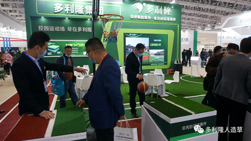 在本次展會中,多利隆將主推產品悉數展出,讓來訪的參展觀眾對多利隆人造草坪體系有了一個全面的了解。主要展示產品為:負離子非充砂足球草坪、非充砂足球草坪、地彈坪-跑道專用、地彈坪-籃球專用。