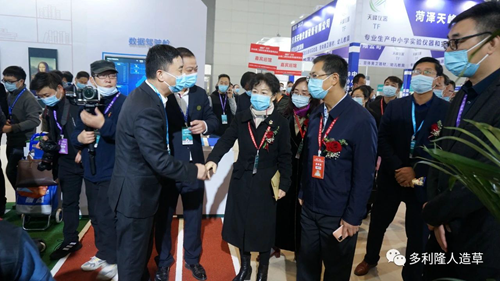 展會期間,省教育廳趙廳長、教育裝備中心趙主任等領導蒞臨多利隆現場考察指導,多利隆董事長王海先生攜重要集團人員進行接待,王總就我司的產品和技術特色、校園場地建設等方面向領導進行了匯報和講解。