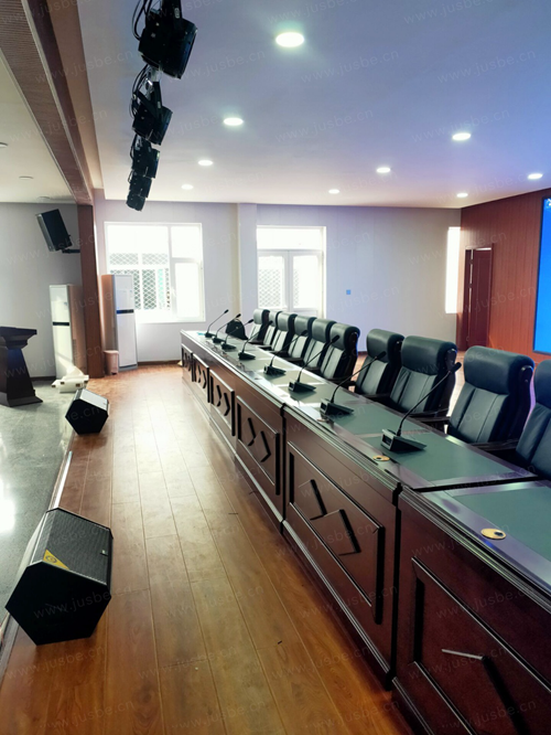 大會議室的擴聲設備,按照場地實地面積,選擇了JUSBE F系列多功能音箱,聲壓足、覆蓋范圍大,音質清晰,適應多種擴聲場合的高品質擴聲,且非常高效、穩定。臺口配置的兩只返聽音箱,能夠增強主席臺上聲場的均勻性以及聲音清晰度,無論是發言或是演講都能清楚聽清自己的聲音。