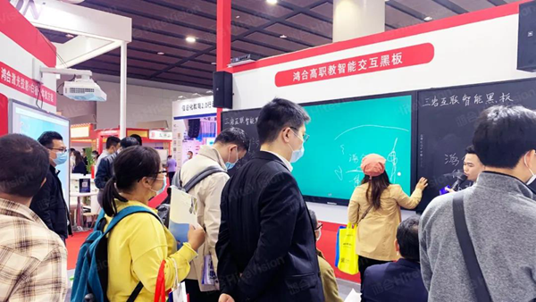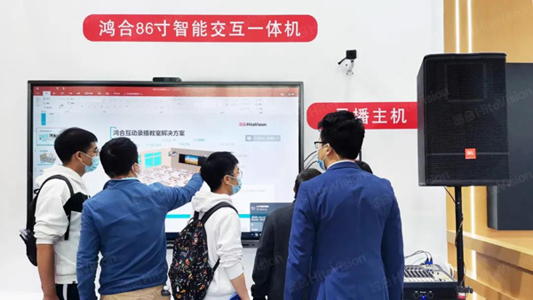 在琳瑯滿目的展品中,集高清顯示、觸摸書寫、多屏互動、豐富教學等應用于一體的鴻合高職教智能交互平板吸睛亮相,98超大尺寸,簡約輕薄,標配4K高清攝像頭,支持快速采集視頻圖像。搭配專屬教學軟件,適用于多樣化教學場景,為高校師生帶去更好的教學體驗。
