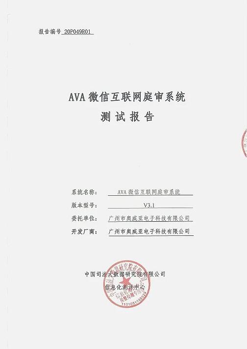 AVA微信互聯(lián)網(wǎng)庭審系統(tǒng)通過測評