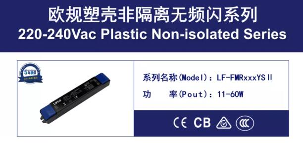As Gen.Ⅱ of our hot-sale product LF-FMRxxxYS, a “non-isolated metal linear LED driver” for tri-proof light and linear light, LF-FMRxxxYS II is designed to be plastic casing and supports new functions of adjustable current and tunable white. It can satisfy demands of multiple applications and provide more choices for customers.