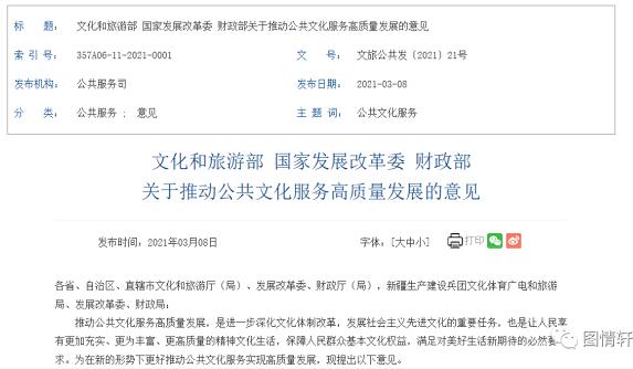 近日,據文化和旅游部官網,文化和旅游部、國家發展改革委、財政部近日聯合印發了《關于推動公共文化服務高質量發展的意見》。