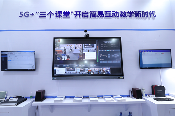 展會上,時代新維便攜式錄播一體機、專遞課堂互動錄播主機等產品亮相。