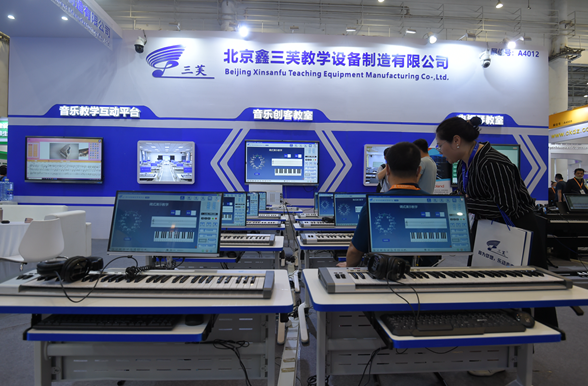 鑫三芙攜音樂(lè)創(chuàng)客教室、五線譜電教板、音樂(lè)教學(xué)互動(dòng)平臺(tái)等產(chǎn)品亮相本屆展會(huì)。