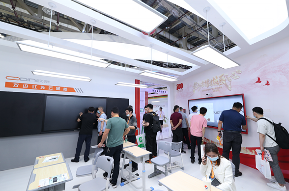 歐帝科技攜全新發布的人工智能校園解決方案、AI智慧教室互動黑板,以及已得到客戶認可的全場景智慧教室解決方案、第四代智慧教室互動黑板、雙邊紅外云黑板、105英寸智慧一體機、智慧白板、智慧講臺等系列產品方案震撼亮相,成為展會的焦點。