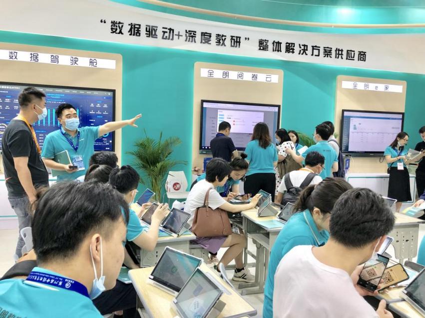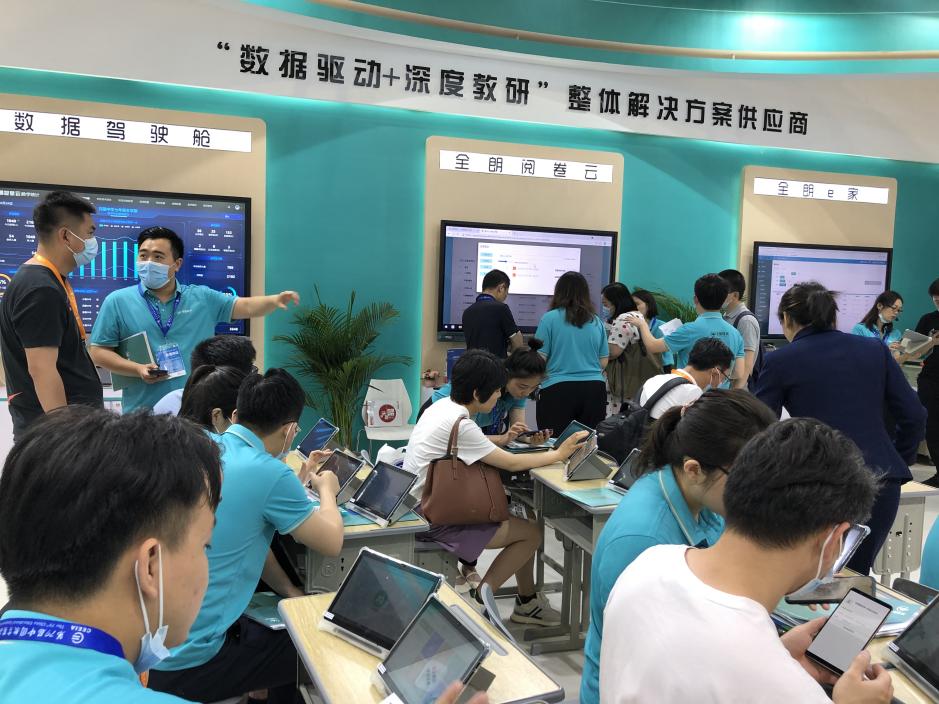 作為本屆展會的特邀企業,全朗教育聚焦教育信息化應用整體解決方案,攜旗下全朗智慧課堂、全朗閱卷云、全朗e家、全朗紙筆互動課堂、全朗AI慧學等多款智慧教育產品及應用成果亮相本次展示會,會場嘉賓和觀眾云集,熱鬧非凡。