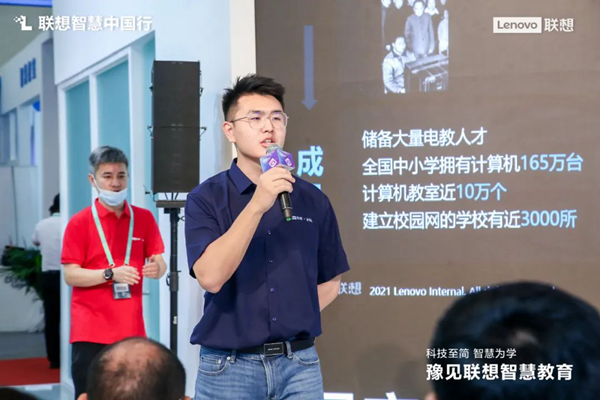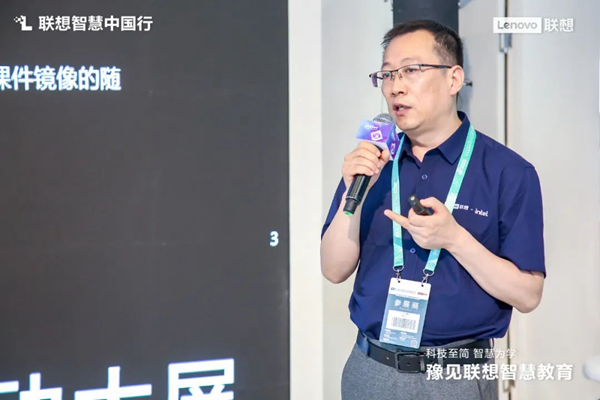 聯(lián)想集團(tuán)中國區(qū)商用大客戶事業(yè)部智慧教育總經(jīng)理金鑫在展區(qū)現(xiàn)場分享聯(lián)想智慧教育戰(zhàn)略,介紹了聯(lián)想全景解決方案。作為智慧教育的實(shí)戰(zhàn)派,聯(lián)想始終致力于以新IT賦能教育變革,以“端、邊、云、網(wǎng)、智”技術(shù)架構(gòu)打造下一代學(xué)習(xí)空間,同時賦能新型教學(xué)和教研,應(yīng)對操作系統(tǒng)多樣化、應(yīng)用多樣化、工具多樣化等新挑戰(zhàn)。