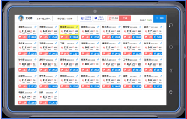云教:體育老師使用手持終端與學(xué)生手表進(jìn)行無線通信,可實(shí)時(shí)監(jiān)測(cè)本節(jié)課各學(xué)生心率、步數(shù)等動(dòng)態(tài)數(shù)據(jù),可設(shè)置最高心率預(yù)警閥值,上課完畢后數(shù)據(jù)一鍵上傳至云端,可橫向比對(duì)每名學(xué)生歷史上課數(shù)據(jù),體育老師可適時(shí)調(diào)整運(yùn)動(dòng)強(qiáng)度和運(yùn)動(dòng)密度,從而提高運(yùn)動(dòng)質(zhì)量、降低運(yùn)動(dòng)風(fēng)險(xiǎn)。