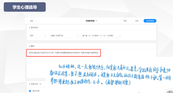 學(xué)生心理疏導(dǎo)在教師空間創(chuàng)建簡答題,題目輸入“同學(xué)最近復(fù)習(xí)過程壓力大嗎?有哪些話想要悄咪咪和老師講嗎?看看老師能不能夠幫到你”,了解學(xué)生的心理狀態(tài),同時(shí)也讓比較內(nèi)向的學(xué)生用于表達(dá)和交流。