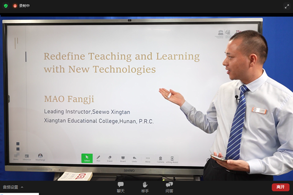直播當日,毛老師以”Teaching and Learning Redefined by New Technologies”(新技術重塑教與學)為培訓主題,用一口標準流利的英文進行了授課。