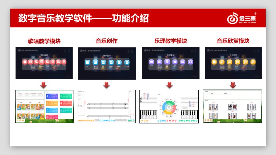 除課堂教學外,系統內還配置了20多萬字的音樂知識庫,有樂理知識、樂器知識、民族樂器、音樂家及作品欣賞、各地區戲曲介紹、海量音樂名曲欣賞,從而開拓學生音樂視野,提升音樂素養。