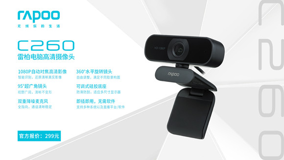 近日,領軍國產外設品牌,實力大廠上市企業Rapoo雷柏,推出了C260電腦高清攝像頭,1080P的自動對焦高清影像,95°的超廣角鏡頭,雙重的降噪麥克風,360°水平旋轉的鏡頭等,為你開啟直播互動的狂潮。