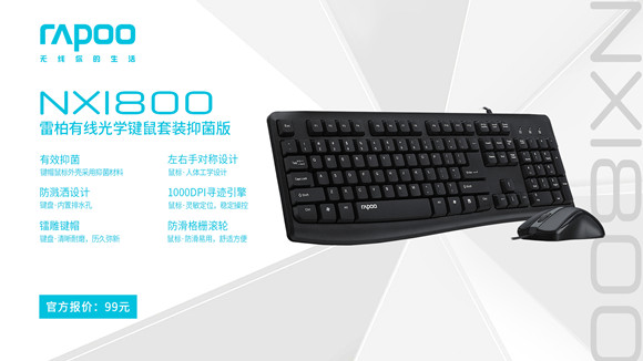 觸享潔凈 雷柏NX1800有線光學鍵鼠套裝抑菌版上市