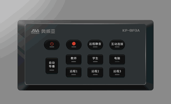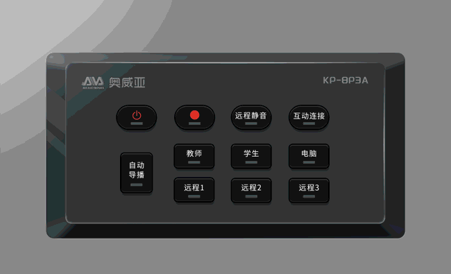 ★ 按下控制面板上的“遠程靜音”按鈕,將遠端聽課教室的聲音全部靜音,指示燈顯示常亮狀態,再次按下該按鈕即可恢復。
