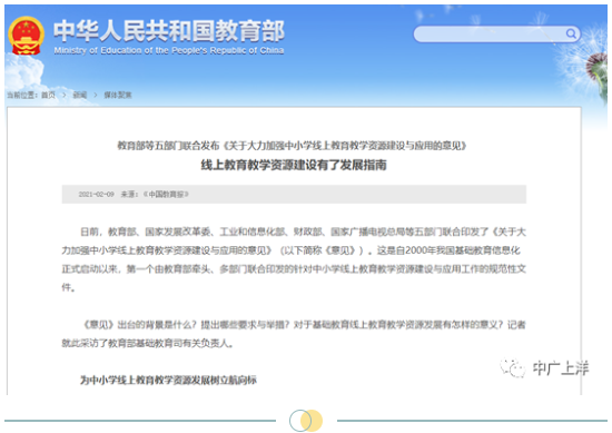 響應雙減,中廣上洋助力國家中小學網絡云平臺課程資源建設