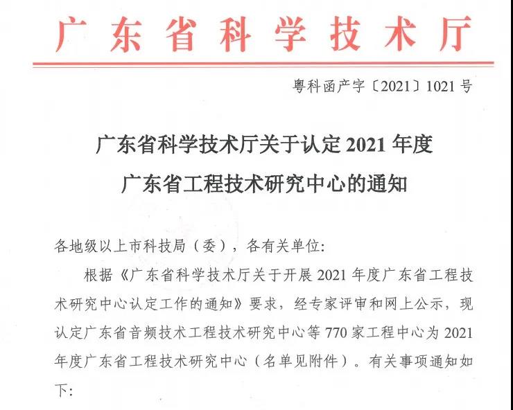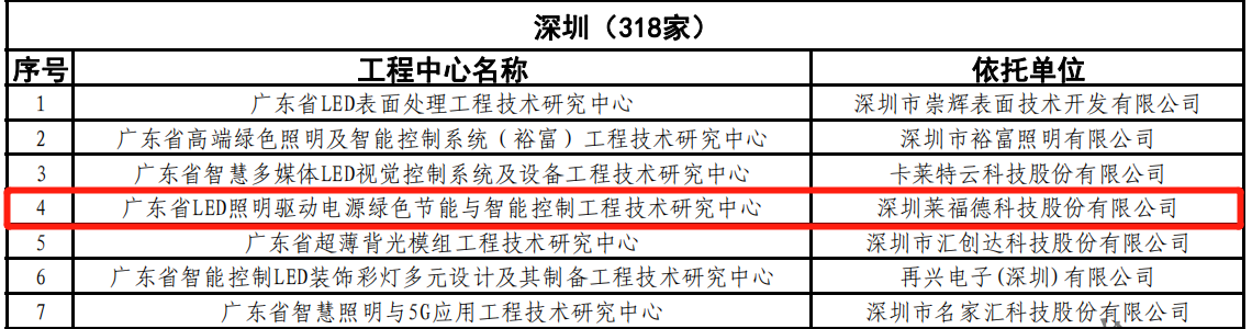 8月20日,廣東省科學技術廳官網發布了《關于認定2021年度廣東省工程技術研究中心名單的通知》,經系列專業評定,由萊福德深圳研發中心設立的“廣東省LED照明驅動電源綠色節能與智能控制工程技術研究中心”成功入選。