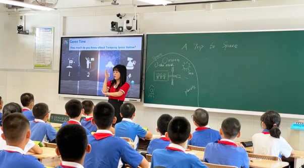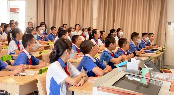 技術(shù)賦能,牽手云端。來自全市各個(gè)區(qū)10余所學(xué)校約20個(gè)班的師生同時(shí)連線到深圳高級(jí)中學(xué)南校區(qū)云端班的教室,和這里的學(xué)生一起上了一節(jié)精彩的云端英語課。來自深圳外國語學(xué)校初中部的王霈老師作為主講教師,在主場(chǎng)學(xué)校的云端教室里以趣味生動(dòng)的英文繞口令,給學(xué)生們帶來一場(chǎng)充滿創(chuàng)意的互動(dòng)課堂新體驗(yàn)。