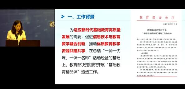 會上,教育部基礎教育司司長呂玉剛指出,“基礎教育精品課”遴選工作是推進基礎教育高質量發展的重要舉措,是落實“雙減”任務的重要行動,也是新時期進一步推進信息技術和教育教學融合的重要手段。
