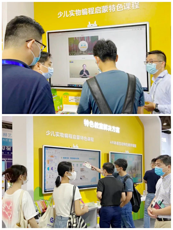 信息化時代當前,用創新好產品助力提升學前教育質量,是行業不可忽視的重要命題。展會上,希沃帶來了涵蓋幼教交互智能平板、體感攝像頭與希沃幼教筆等多項產品的幼教解決方案,打通教與學的多個環節,全面保障更高水平的幼兒教育。在展區現場,特色教室解決方案的AR體感互動特色教學課程與少兒實物編程啟蒙特色課程吸引了許多觀展觀眾圍觀,工作人員和觀眾就希沃幼教的特色方案如何落地展開了深入交流。