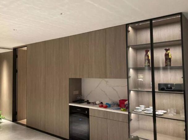 The cabinet was equipped with LED strips and down lights, making the whole cabinet become brighter visually. Besides, this well-designed lighting has the function to respond to the other spaces in the room. ▼ 細(xì)節(jié)重點照明 Detail lighting