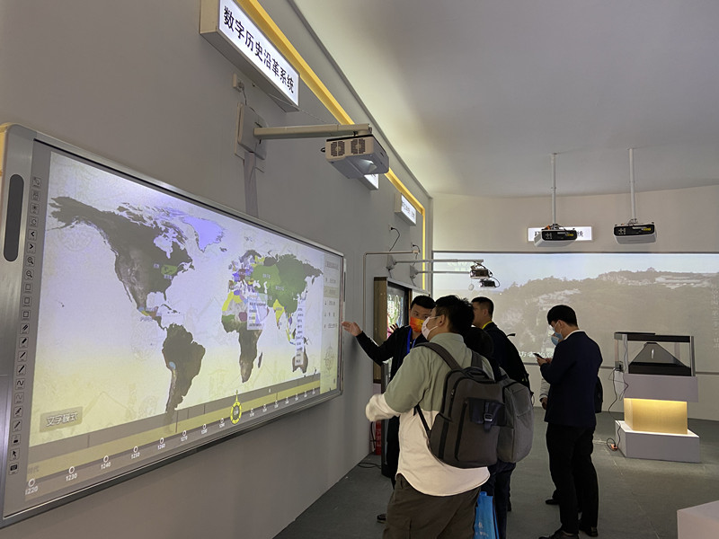 史地教室是羿飛教育的王牌項目,一直以來都備受行業關注。此次現場展出數字歷史沿革系統、互動演示實驗、AR地理沙盤、數字立體地形、數字模型、交互式3D多媒體教學系統等。