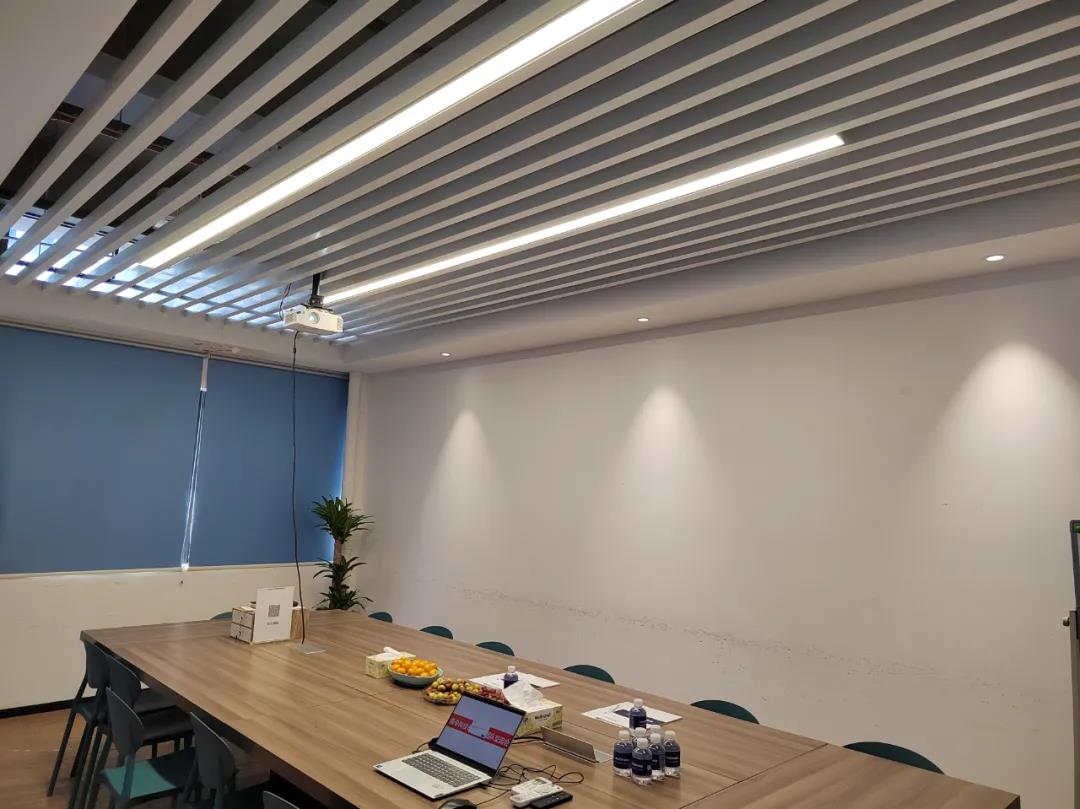 在會議室照明中,除了明亮嚴謹,會議桌頂部的照明可設為主照明,周圍增添輔助照明,這樣可以使人產生中心集中的感覺,讓人的注意力自覺的集中在會議主桌上,同時可增加設置多種會議照明模式,一鍵調用提供會議效率。